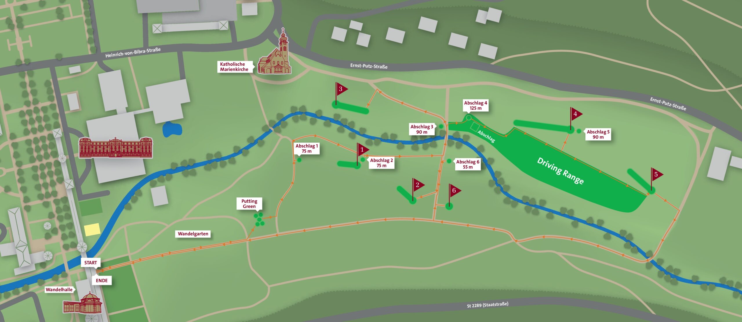 Eine in den Naturraum eingebetteten 1 ha große Golfanlage mit 6 Bahnen, Driving Range und Putting Green, die den Patienten der örtlichen Kurklinken im Staatsbad und den Gästen zur Verfügung steht. Als Teil des angebotenen Therapieprogramms, in Verbindung mit körperlicher Betätigung und Achtsamkeitsübungen, soll den Patienten und Gästen die naturnahe Landschaft des Sinngrunds nähergebracht werden. Die Kleingolfanlage ist nicht als konventionelle Golfanlage zu verstehen, sondern als Teil des örtlichen Therapieprogramms und Kurtaxleistungen — unter der Bezeichnung „Meditatives Golfen“.